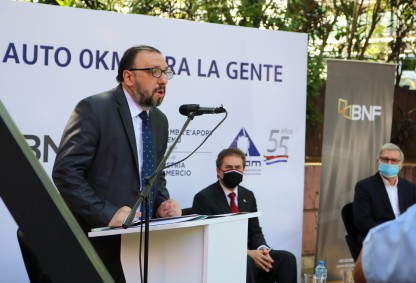 La tercera edición del programa “Vehículo 0km para la gente”, impulsado por el Ministerio de Industria y Comercio (MIC), el Banco Nacional de Fomento (BNF) y la Cámara de Distribuidores de Automotores y Maquinarias (CADAM), fue lanzado en el estacionamiento del MIC, con la presencia del Ministro Luis Alberto Castiglioni; el Presidente de la entidad bancaria, Carlos Florentín; el Presidente de la CADAM, Miguel Carrizosa, e invitados. También, en la oportunidad fueron presentados los créditos preferenciales para maquinarias.