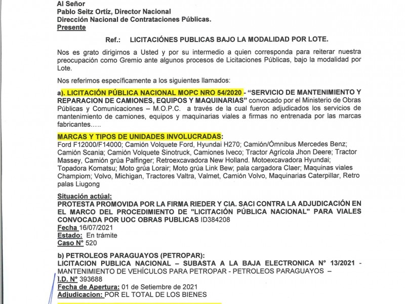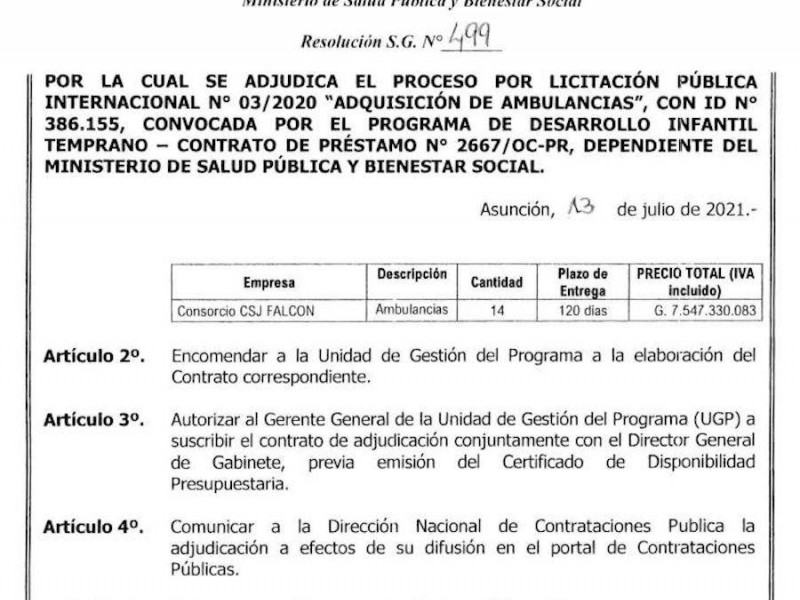 CADAM REITERA SU PREOCUPACIÓN POR LA ADQUSICIÓN DE AMBULANCIAS POR LA LICITACIÓN PÚBLICA INTERNACION...
