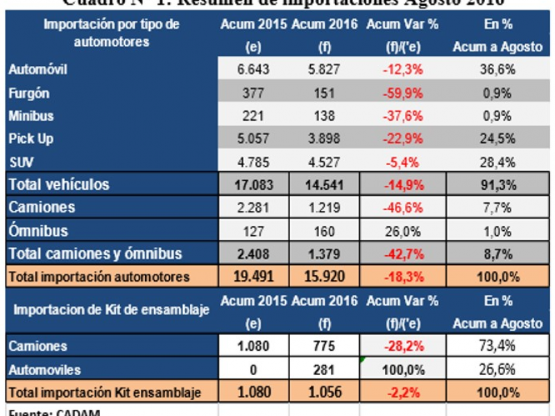 ESTADÍSTICAS DE ENERO A AGOSTO DEL 2016 El Departamento de Estadísticas de la Cámara de Distribui...